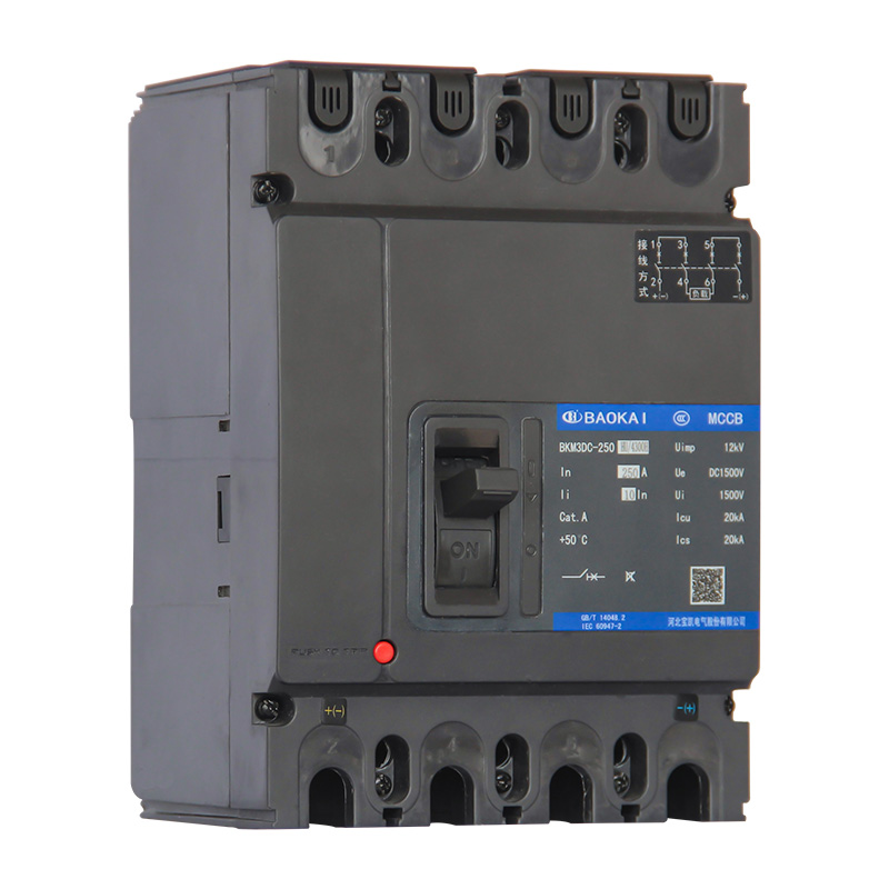 BKM3DC-HU系列直流塑料外殼式斷路器適用于直流系統應用環境,額定絕緣電壓DC1500V,額定工作電壓至DC1500V,額定電流至500A的配電網絡中。本系列斷路器具有過載、短路保護功能,能保護線路和電源設備不受損壞。產品廣泛用于新能源、電化學儲能、電力發電、輸變電、通訊、工控、地產、電力電源、軌道交通、工(公)建等行業中。本系列斷路器具有隔離功能。本系列斷路器執行標準:IEC 60947-1及GB/T 14048.1 《低壓開關設備和控制設備 第1部分:總則》IEC 60947-2及GB/T 14048.2 《低壓開關設備和控制設備 第2部分:斷路器》
